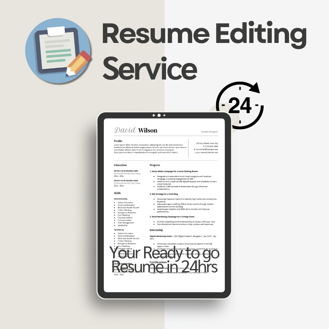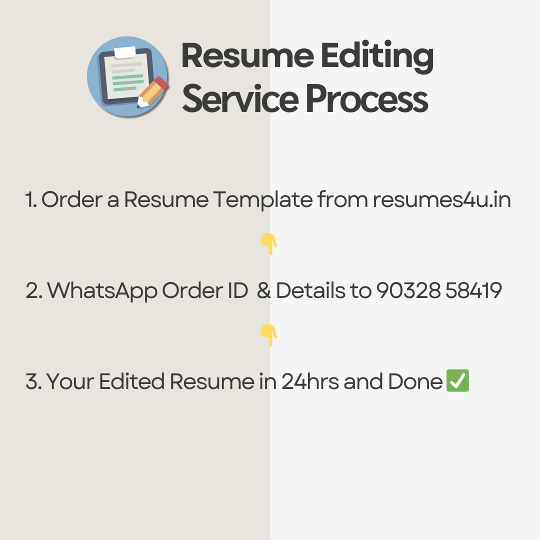 You can purchase this Resume Editing Service along with any resume template on resumes4u.in.