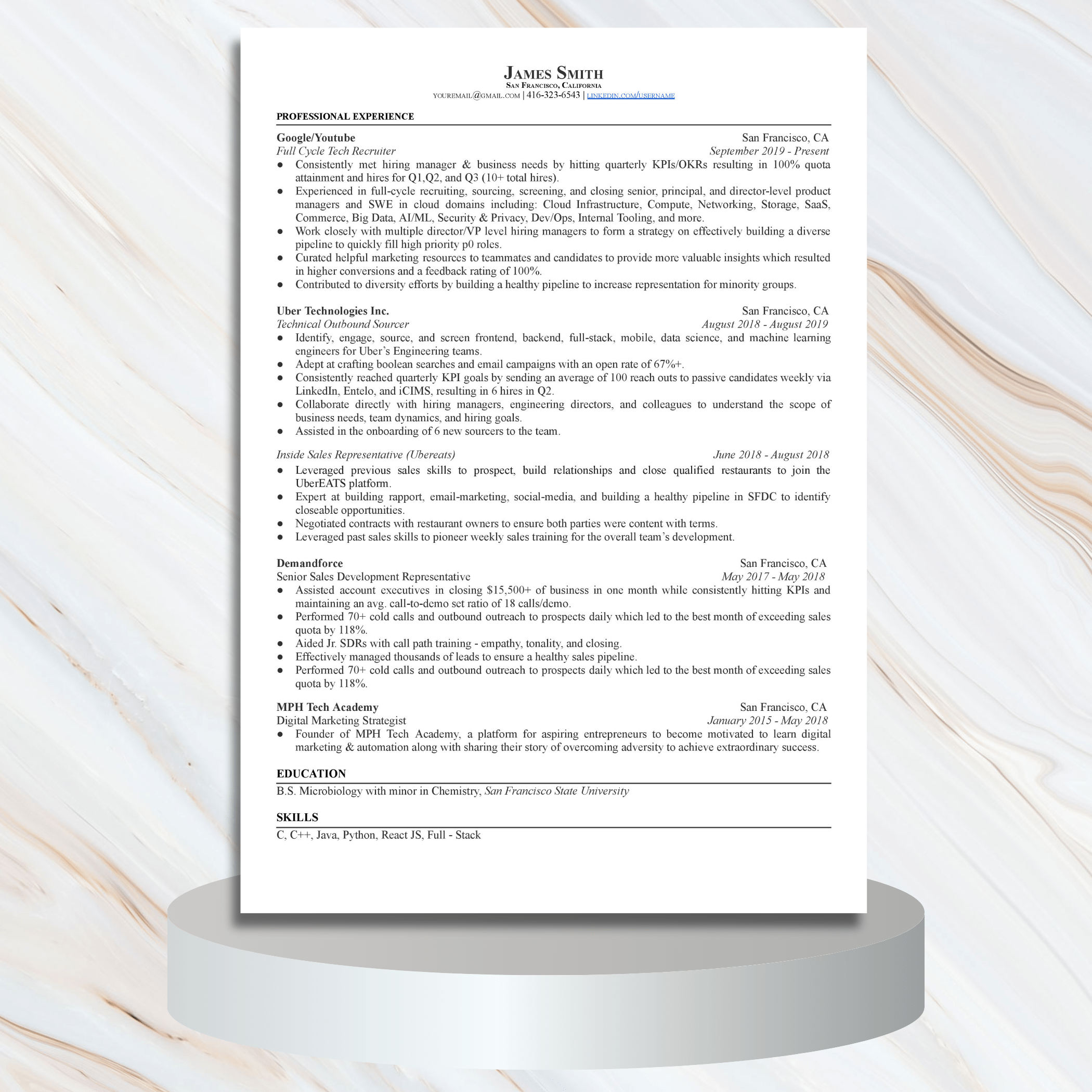 Resume for Experienced #1 – ATS Friendly – Professional Modern CV Template – Compatible for Docs, Word, Pages
