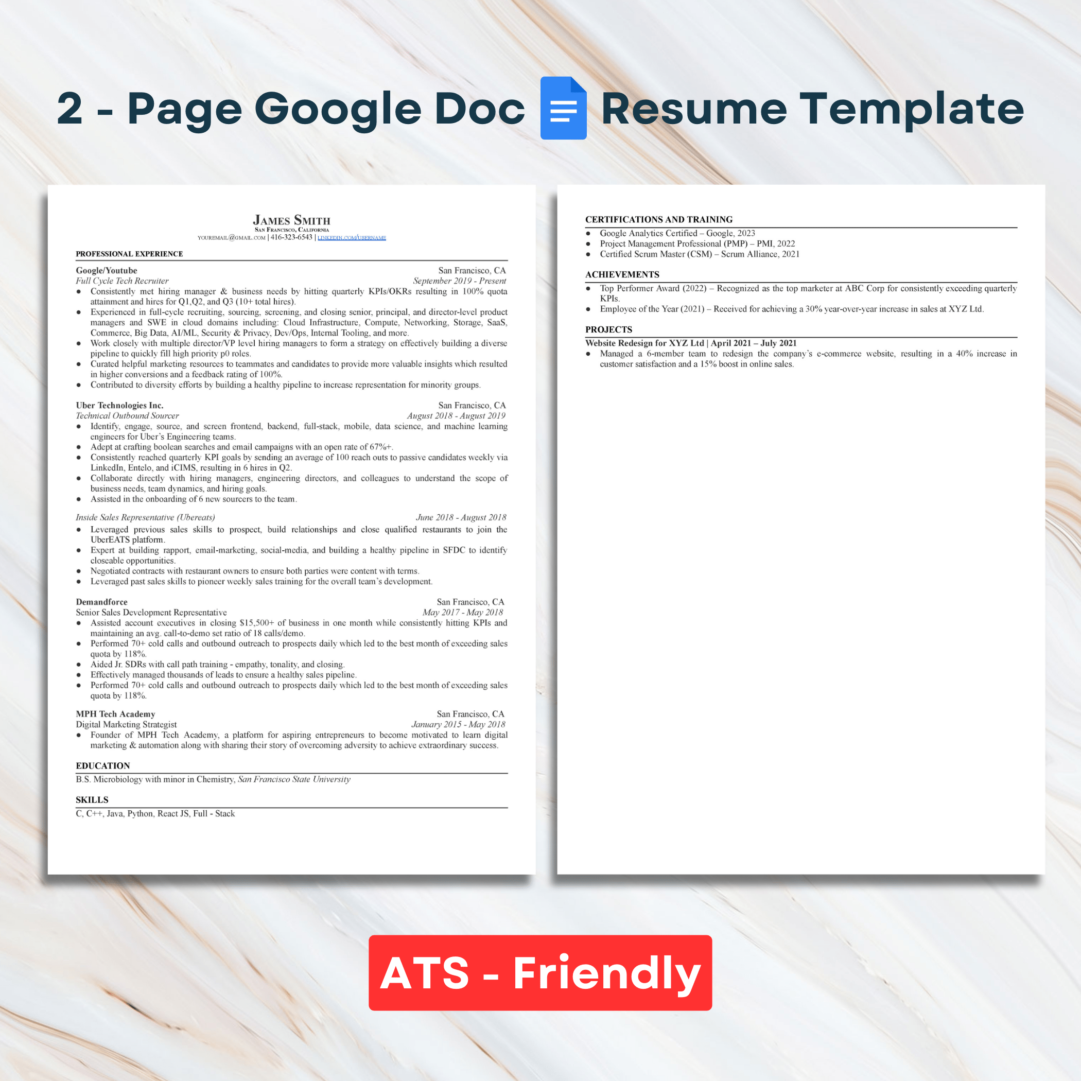 2025 Google Docs Resume Template | Best ATS Friendly Resume Template | Professional Modern Resume | CV Template | Compatible for Docs, Word, Pages