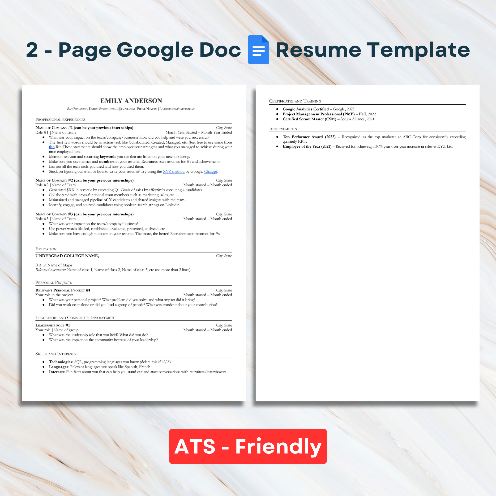 2025 Google Docs Resume Template | Best ATS Friendly Resume Template | Professional Modern Resume | CV Template | Compatible for Docs, Word, Pages
