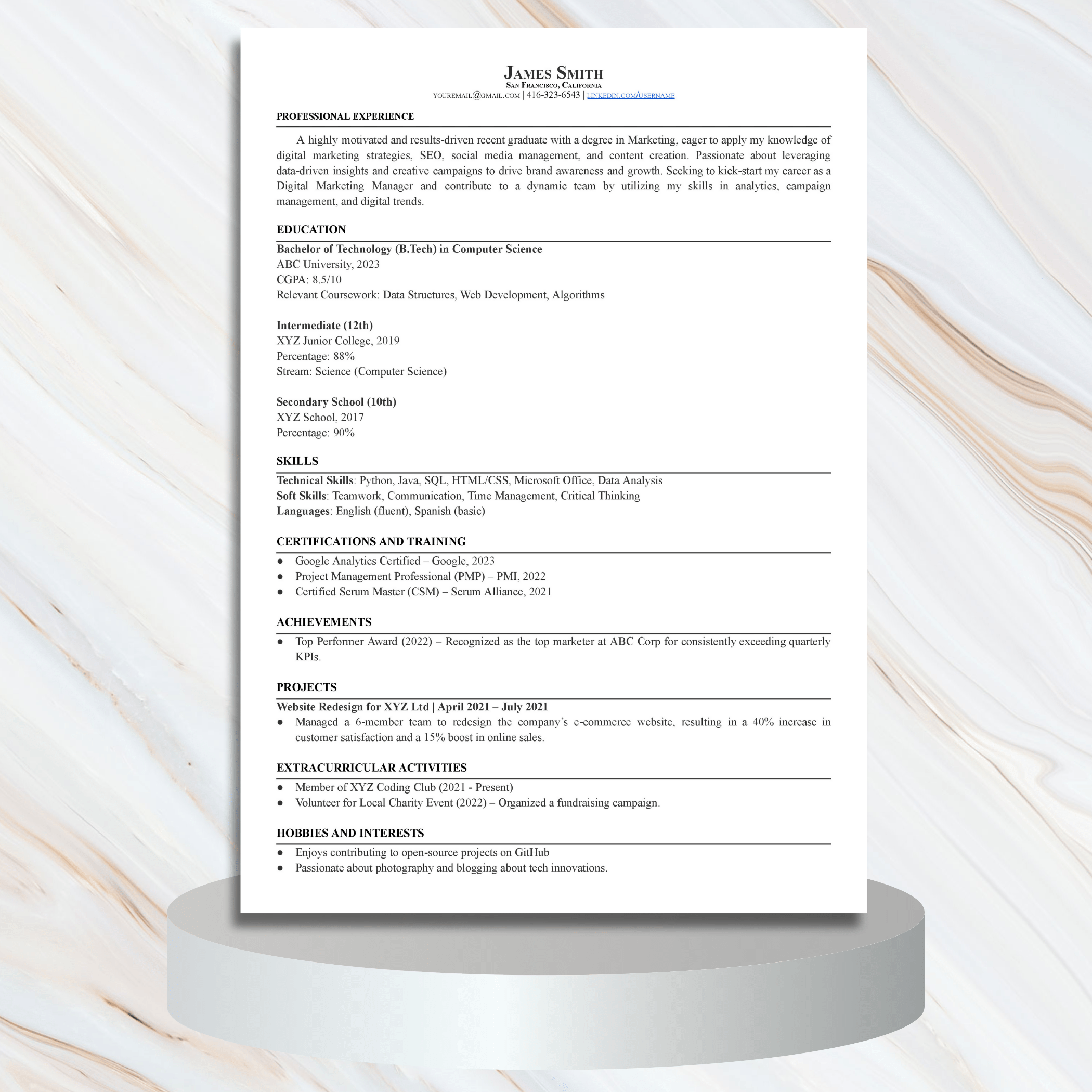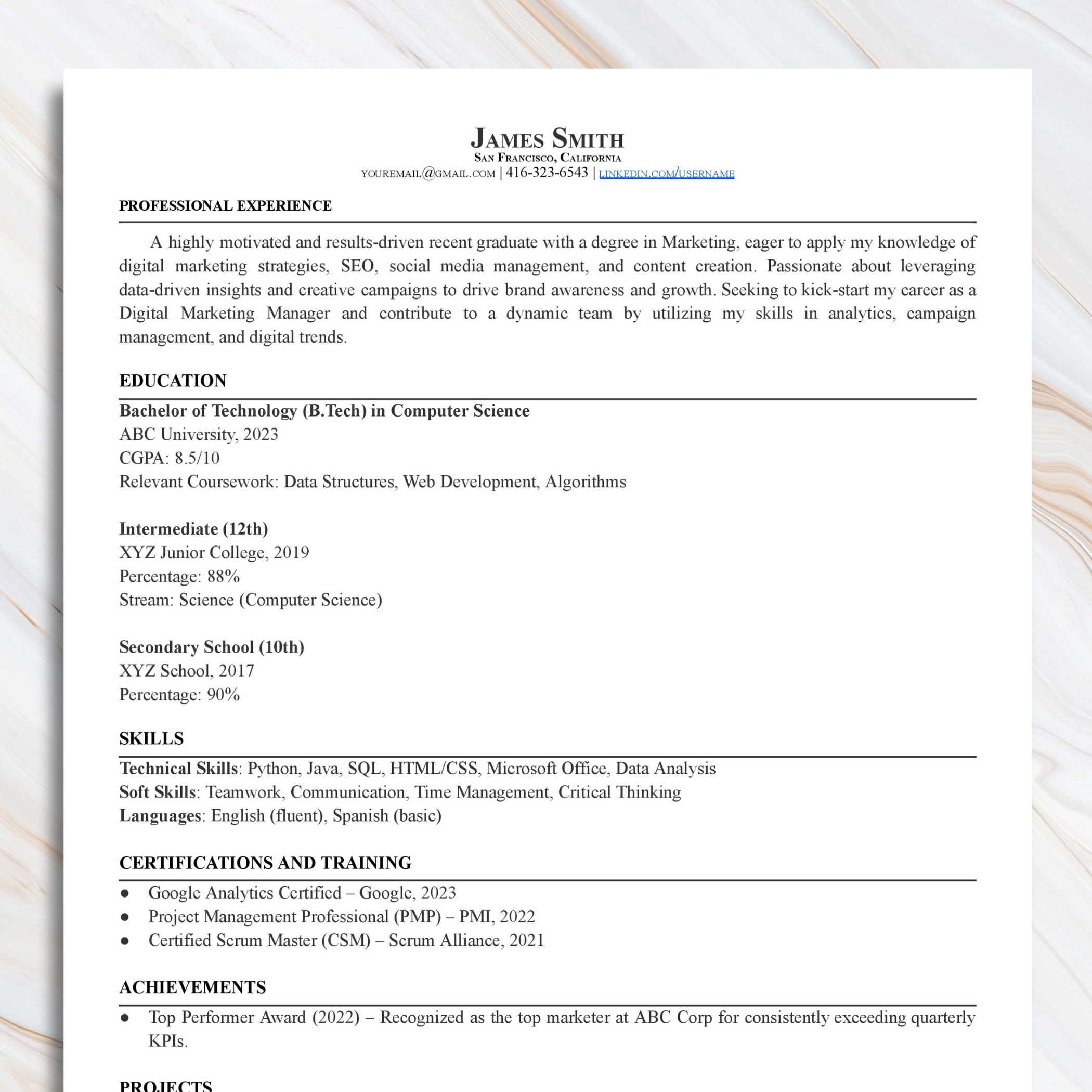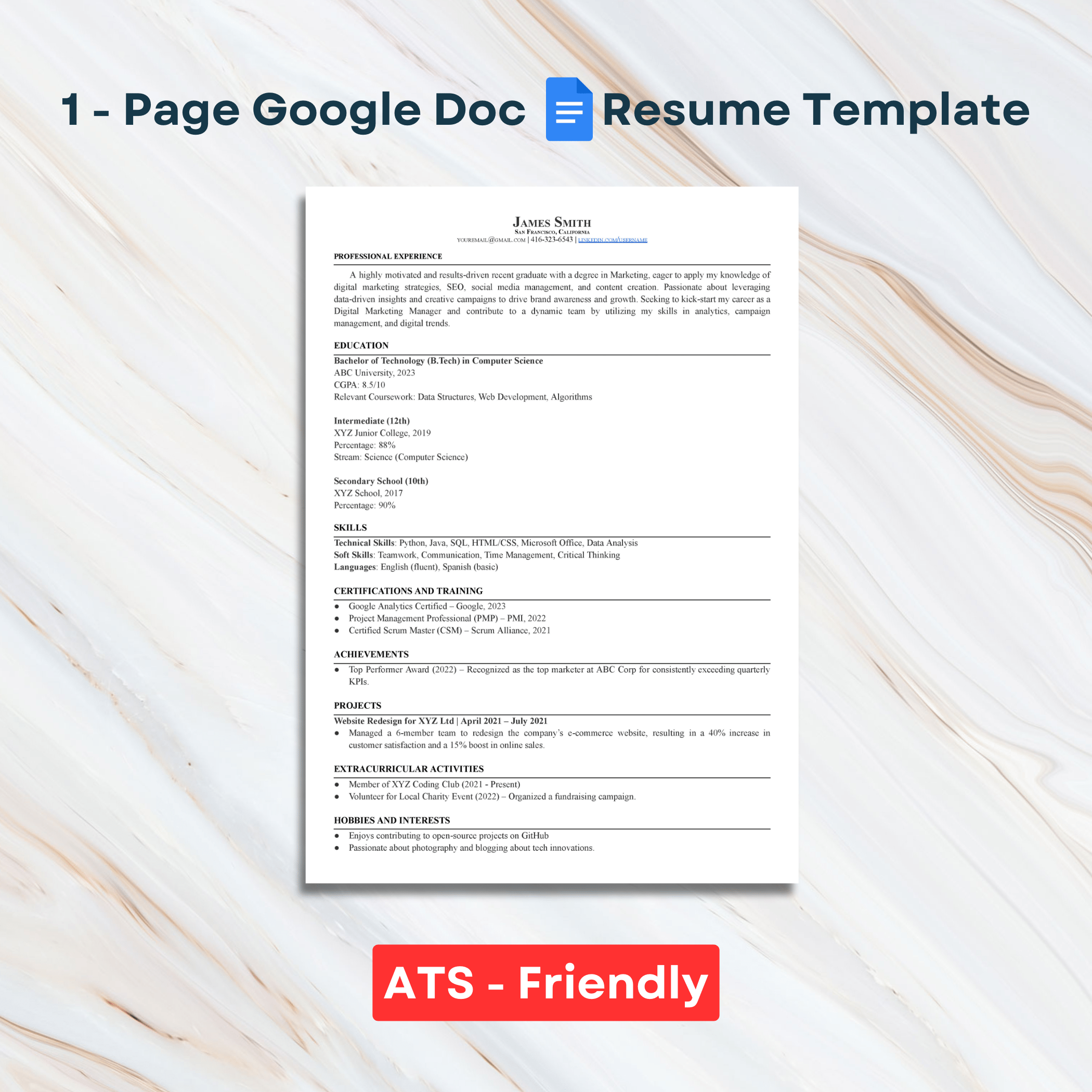 Professional ATS-Friendly Resume Template for Fresher | Google Docs & MS Word Compatible