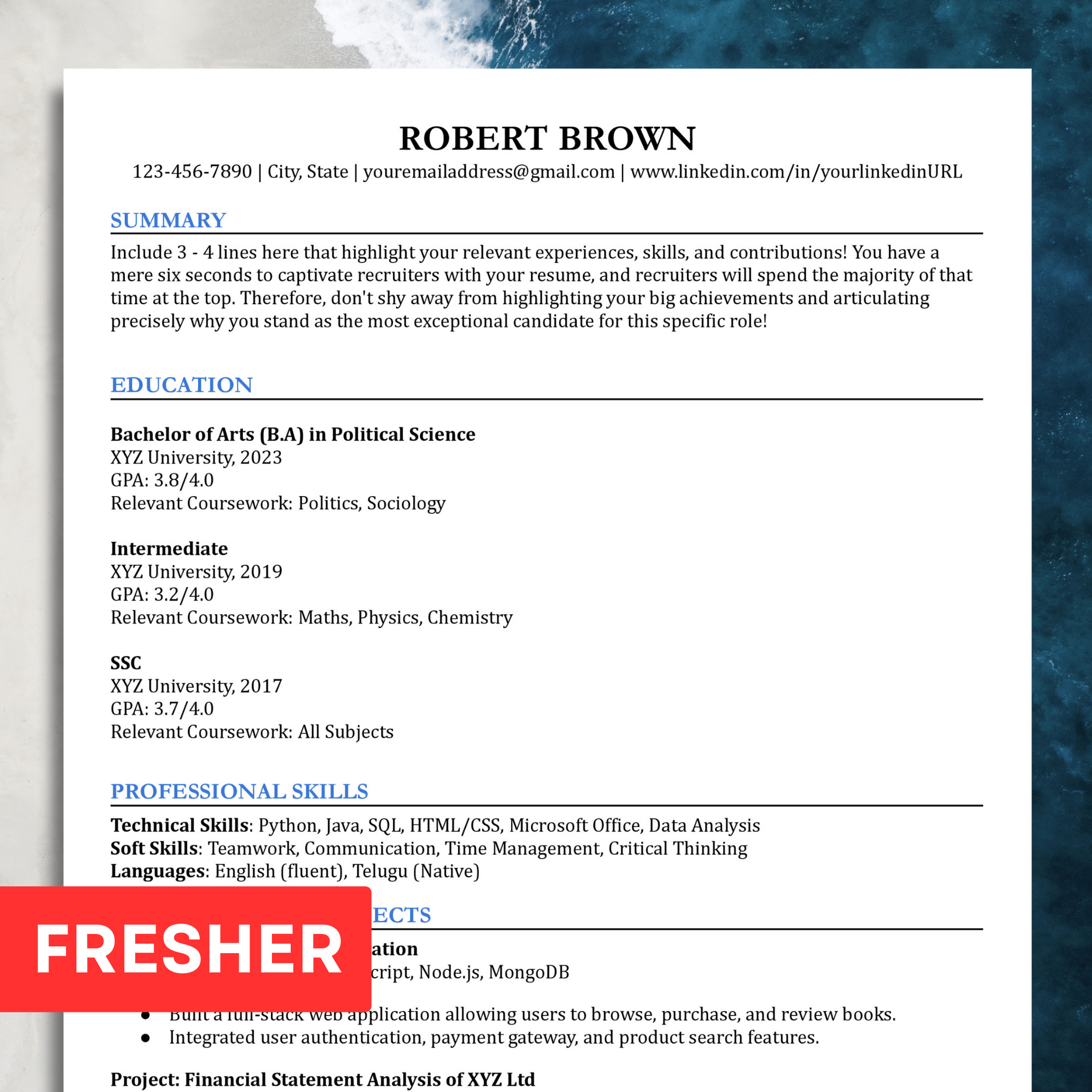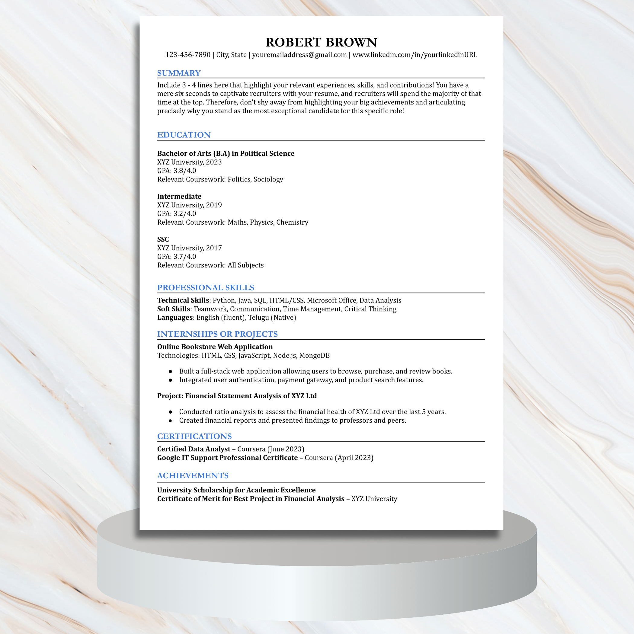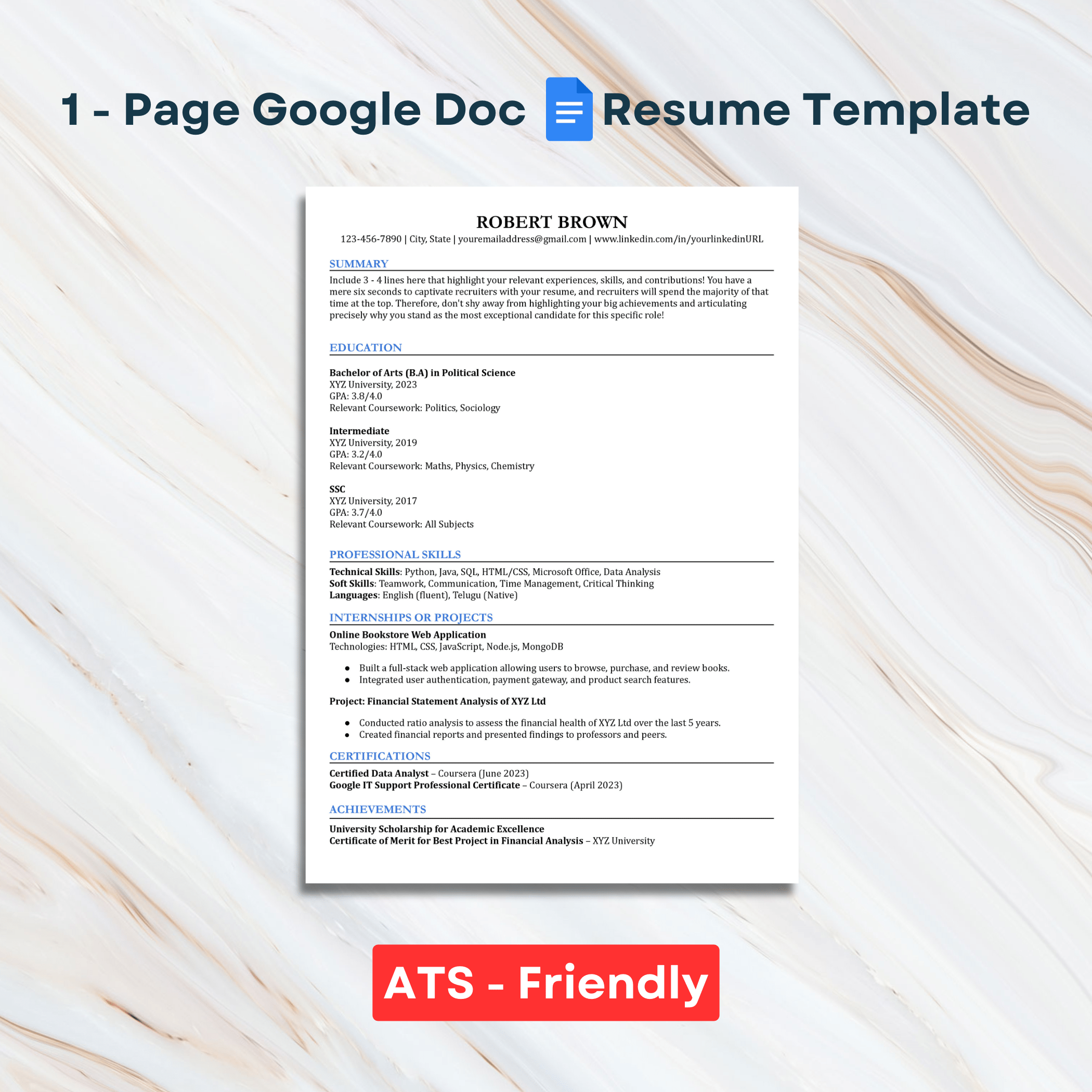 Professional ATS-Friendly Resume Template for Fresher | Google Docs & MS Word Compatible