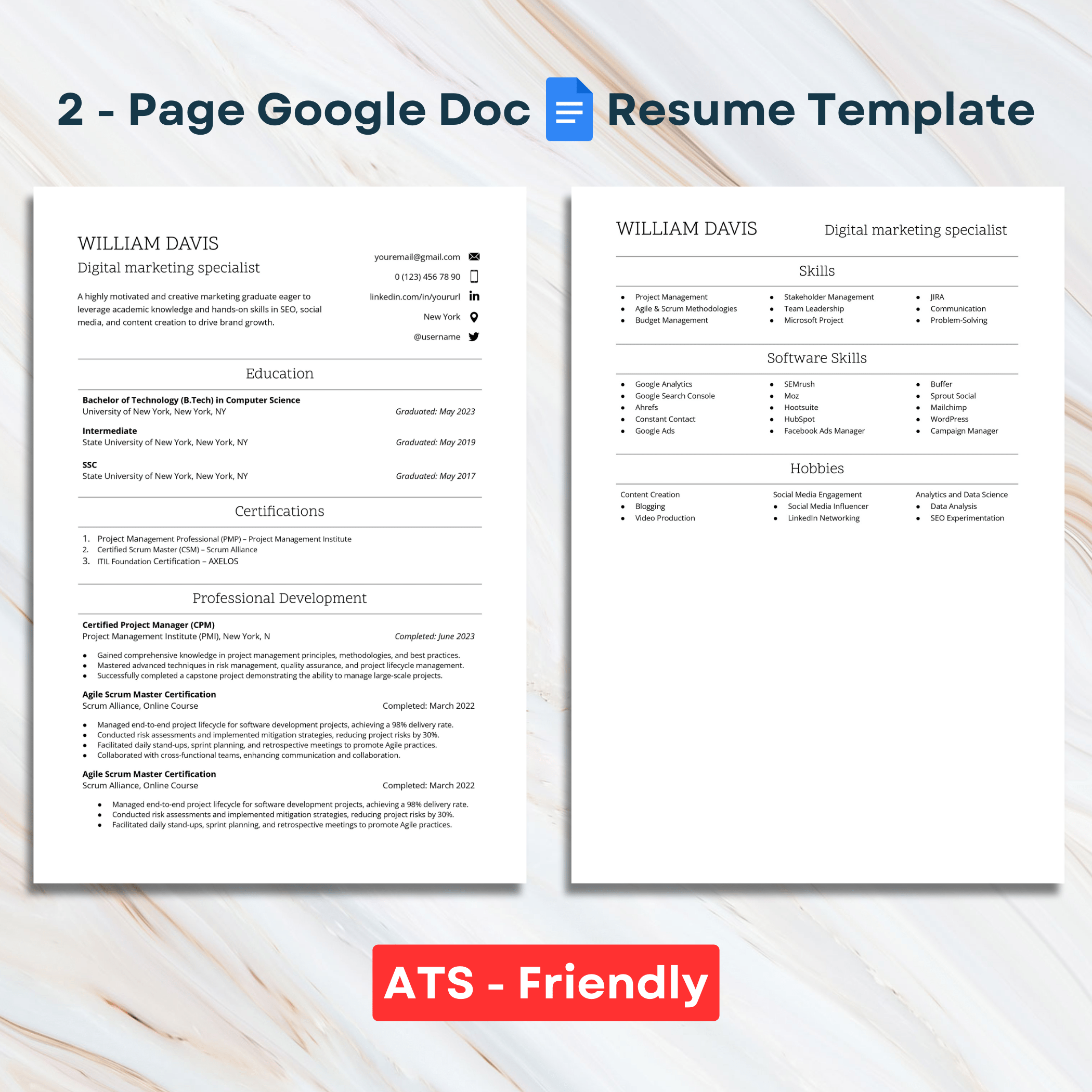 2025 Google Docs Resume Template | Best ATS Friendly Resume Template | Professional Modern Resume | CV Template | Compatible for Docs, Word, Pages