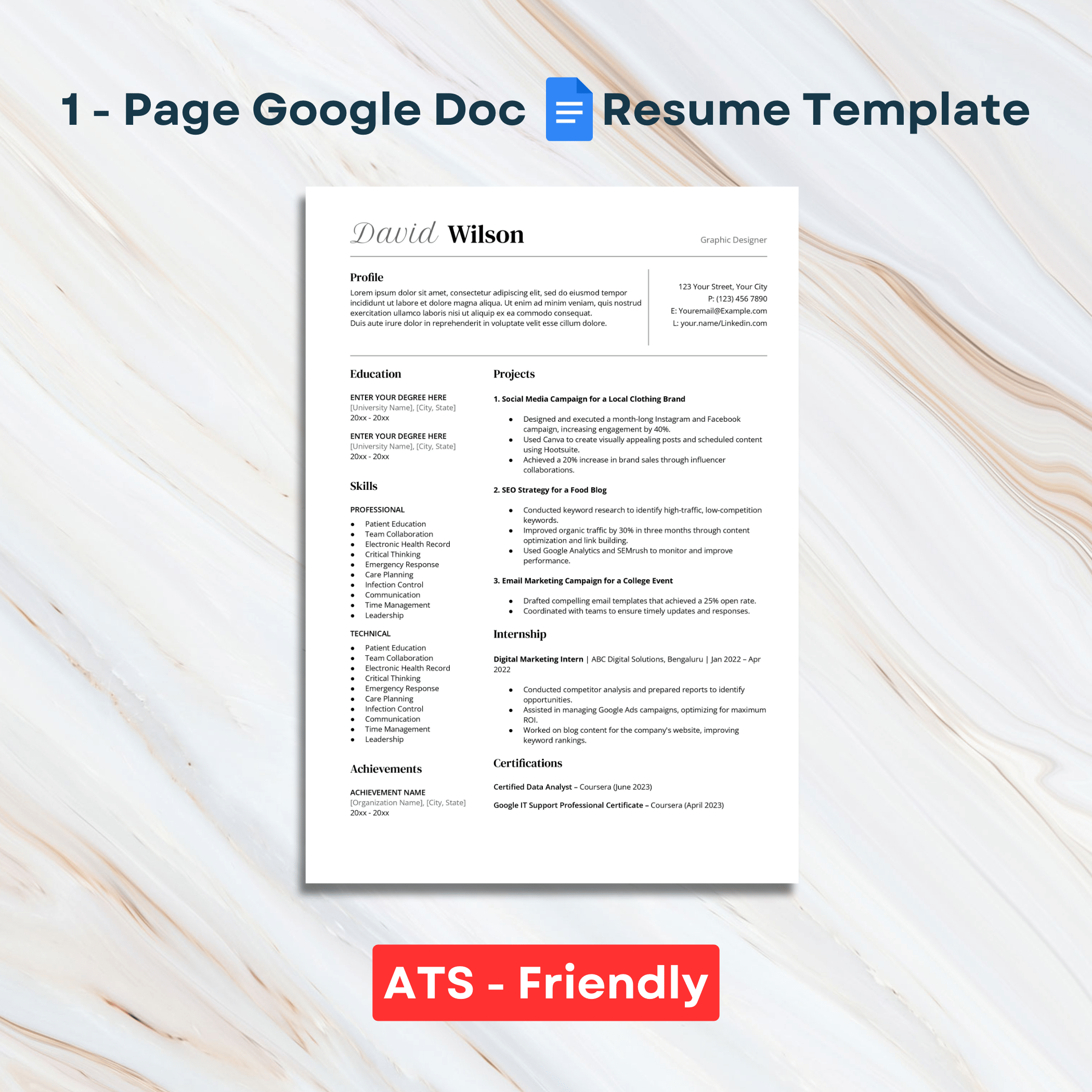 ✅ 1-Page Google Docs Resume Template