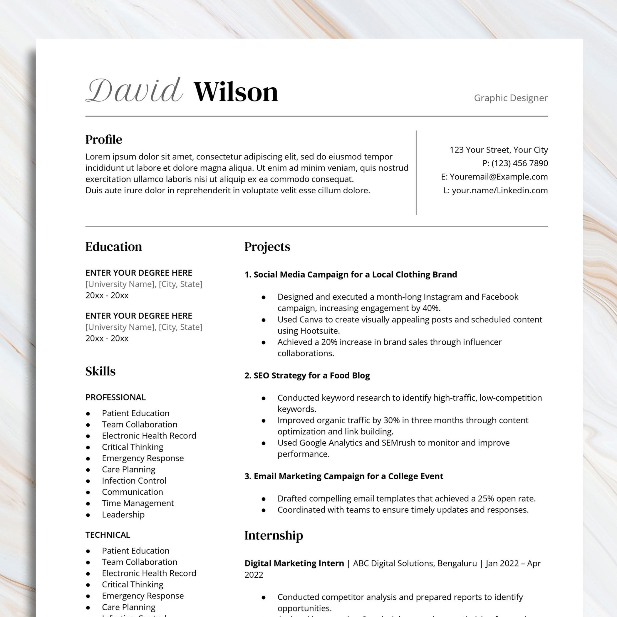 Resume for Freshers #5 – ATS Friendly – Professional Modern CV Template – Compatible for Docs, Word, Pages